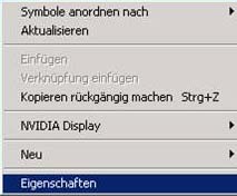 Aufruf der Darstellungsoptionen Rechtsklick auf dem Desktop , dann Eigenschaften anklicken. |