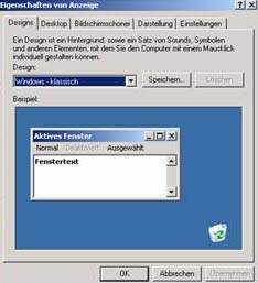 Design : Windows – klassisch Erst auf Übernahme, dann auf OK klicken ! |